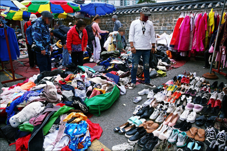 시장에 들어서자마자 나를 반기는 것은 산더미처럼 쌓인 옷가지들이다. 사진 속 풍경처럼 사람들은 허리를 숙여 그 '기억의 더미' 속을 헤집는다. 단돈 몇 천 원에 누군가의 한 계절을 통째로 살 수 있는 곳. 손끝을 스치는 거친 코트의 질감과 빛바랜 소매깃에는 이전 주인이 보냈을 겨울의 시린 바람과 어느 따뜻했던 저녁의 온기가 여전히 배어 있는 것만 같다. 유행이 지나 외면받았던 물건들이 이곳에서는 다시 누군가의 선택을 기다리며 새로운 생명력을 얻는다.